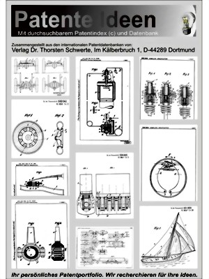 Normalerweise können es sich nur Firmen leisten umfangreiche Patentrecherchen, wie die hier angebotene, erstellen zu lassen. Die Zusammenstellung solcher Sammlungen in gut archivierbarem Format ist aufwendig und setzt kostenpflichtige Datenbankprogramme voraus. Manche amerikanische Firmen berechnen für die Recherche bis zu 3,50 € pro Patent! Unser Verlag bietet Ihnen hier diese Leistungen zu einem unschlagbar niedrigen Preis an. Sollte Ihnen ein Sie interessierendes Thema fehlen, so fordern Sie uns und wir erstellen Ihnen ein Angebot, zu dem Sie nicht "Nein" sagen können (allerdings nur für private und nicht kommerzielle Zwecke, für Firmenanfragen existieren andere Bedingungen (Anfragen erwünscht)).